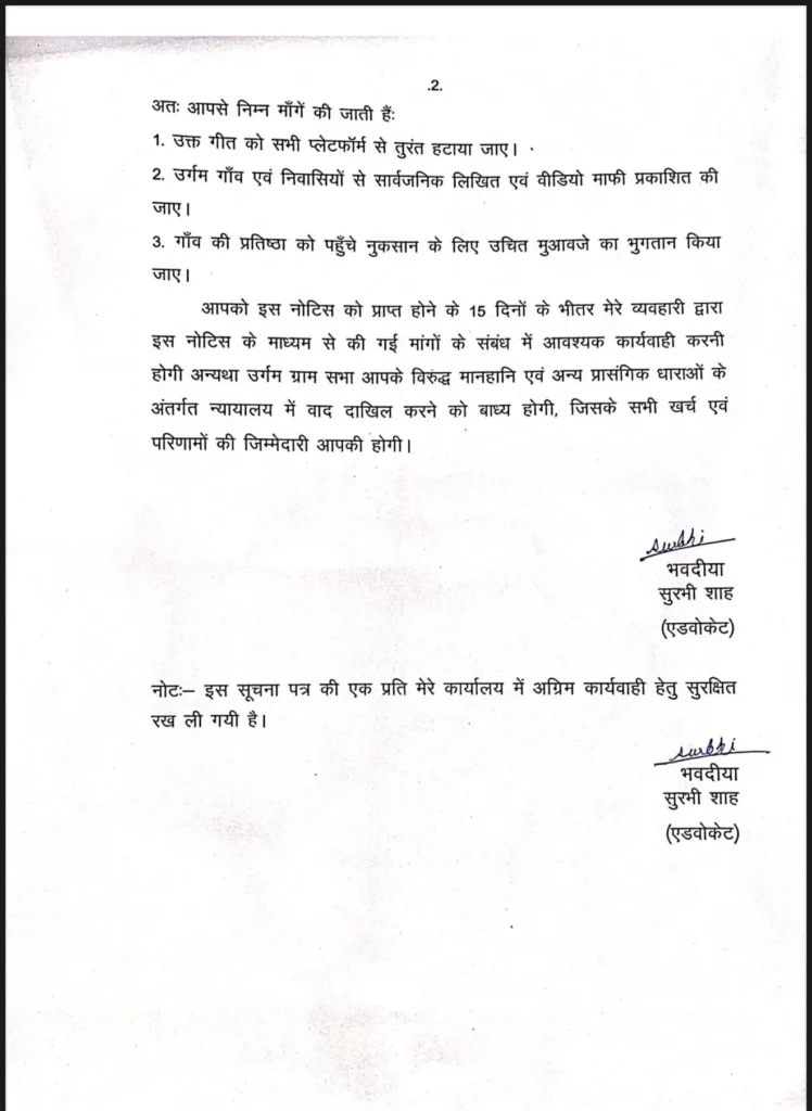 - गाने को तुरंत सभी प्लेटफॉर्म से हटा दिया जाना चाहिए।